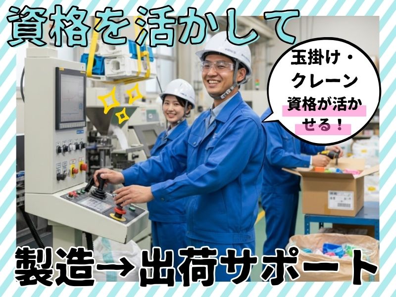 <玉掛け・クレーン資格ある方時給1700円!>プラスチック製品の製造→出荷サポート★土日基本休み