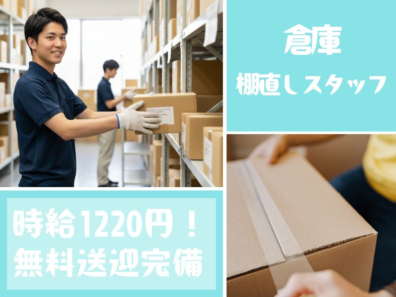 \ 商品の棚直し♪/人気の倉庫作業◎ちょ~シンプルなお仕事で時給1220円!無料送迎付き☆彡