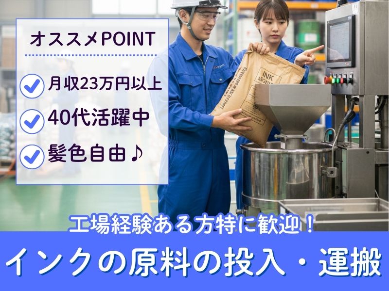 \髪色自由/週替わりの2交替制で高収入♪インク原料の投入などシンプル作業◎JR伊丹駅から徒歩圏内!