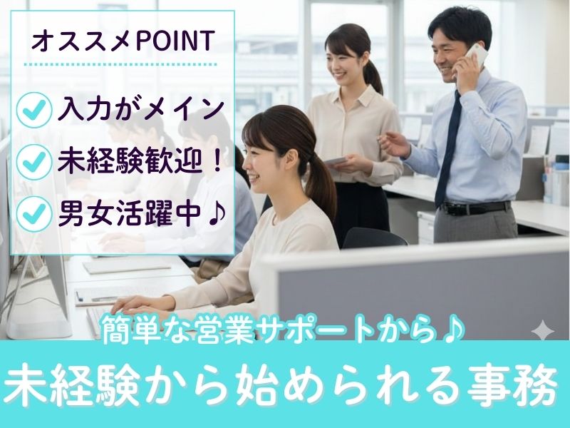 \土日祝休み×17時半ピタ退社!/事務デビュー歓迎★入力やメール作成など、営業さんの事務サポート◎