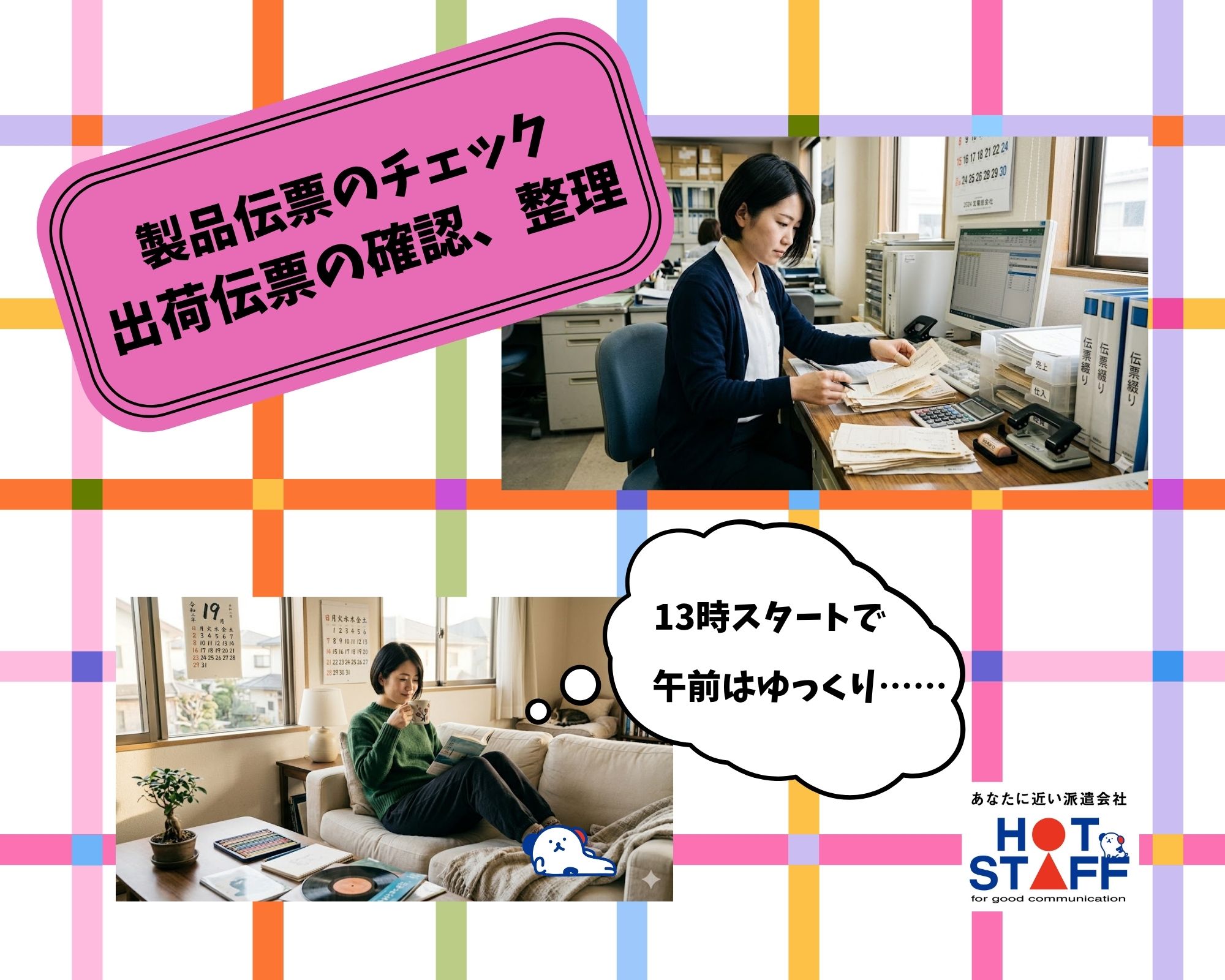 13時スタート/モクモク作業/赤穂/短時間で高時給/製品伝票のチェック・出荷伝票の確認・整理