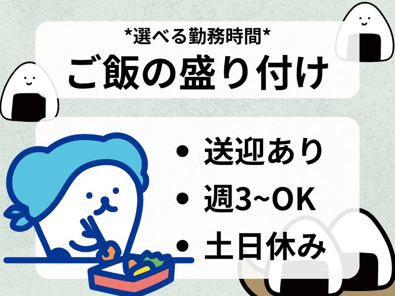 <3箇所から無料送迎あり♪>週3日~OK!社員食堂での調理補助*配膳や洗い物*未経験歓迎◎土日休み◎選べる勤務時間♪