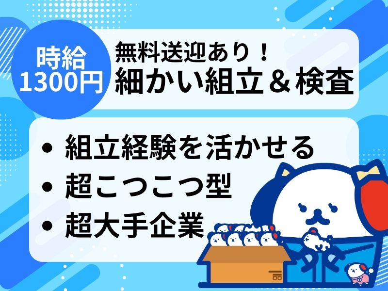 <1度は聞いた事のある大企業!>無料送迎あり◎細かい部品の組立&検査*時給1300円スタート♪