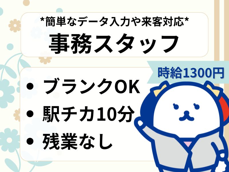 <選べる勤務形態♪>高時給1300円!葬祭会社での事務*データ入力や来客対応*駅チカ徒歩10分♪