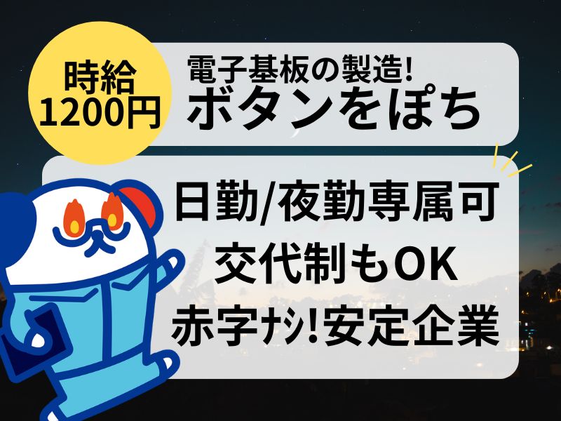 <丹波市・日勤夜勤専属OK!>重量物は一切ナシ!電子基板の製造*機械オペレーター!即日勤務OK