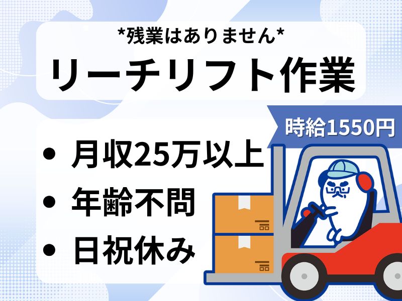 <リフトの免許をお持ちの方必見◎>高時給1550円!涼しい倉庫でのリーチリフト作業*日祝休み*車通勤OK*残業はありません♪