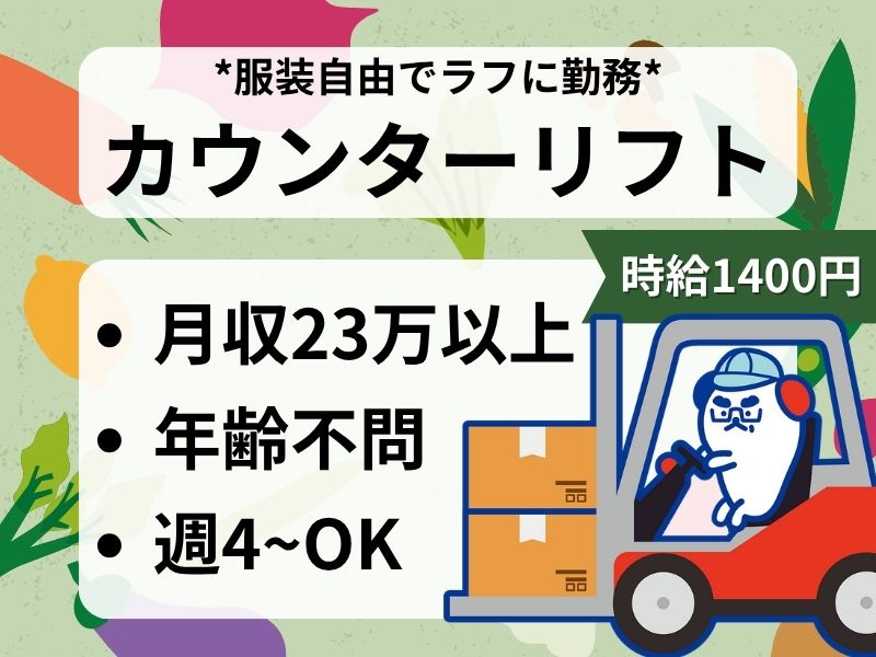 <日曜+1日休み◎>週4日~OK!リーチリフトでの果物入出庫*服装自由*高時給1400円◎中央市場前駅から徒歩10分♪
