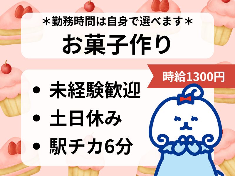 <勤務時間は自身で選べます◎>高時給1300円!ケーキやシュークリーム作りのお手伝い*土日休み◎新開地駅から徒歩6分~♪