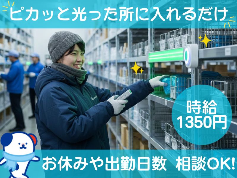 <西区見津が丘・時給1350円>休みの相談色々OK!冷蔵冷凍倉庫でピカッと光ったところに入れるだけ◎