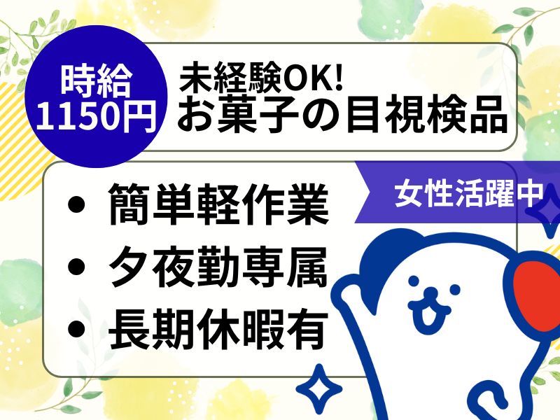 <夕勤&夜勤専属OK!>1度は食べた事あるあのお菓子♪老舗お菓子メーカーにて目視検品*未経験OK!