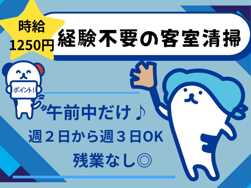 <午前中だけの勤務です◎>残業なし♪経験不要の簡単な客室清掃♪週2日から週3日のお仕事!!