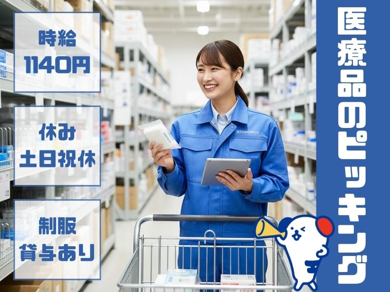 <土日祝休みで長期休暇あり◎>未経験歓迎!注射器などの医療品のピッキング*総合運動公園駅から徒歩圏内♪