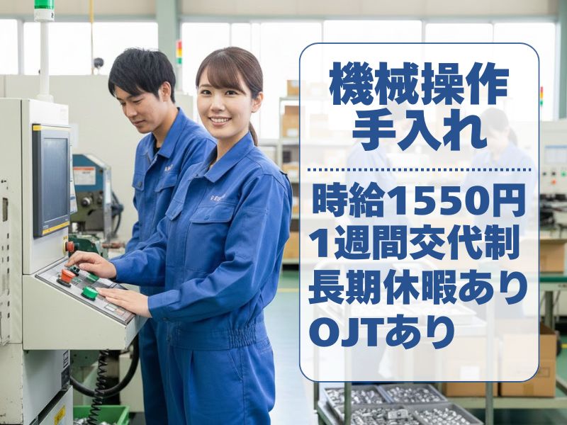 <三田市テクノパーク・時給1550円>残業なしで月収28万以上♪金属機械オペレーターやお手入れなど*1週間2交代制◎