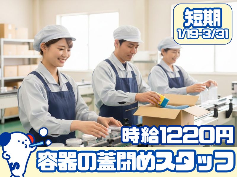 <1/19~3/31まで・8:30~17:30>かんたん軽作業!容器の蓋閉めスタッフ*終了時間調整OK!総額44万前後稼げる♪
