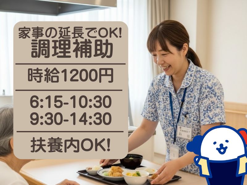 <6:00~10:30等・車通勤OK>高時給1200円♪施設での調理補助*選べる時間帯◎未経験歓迎!