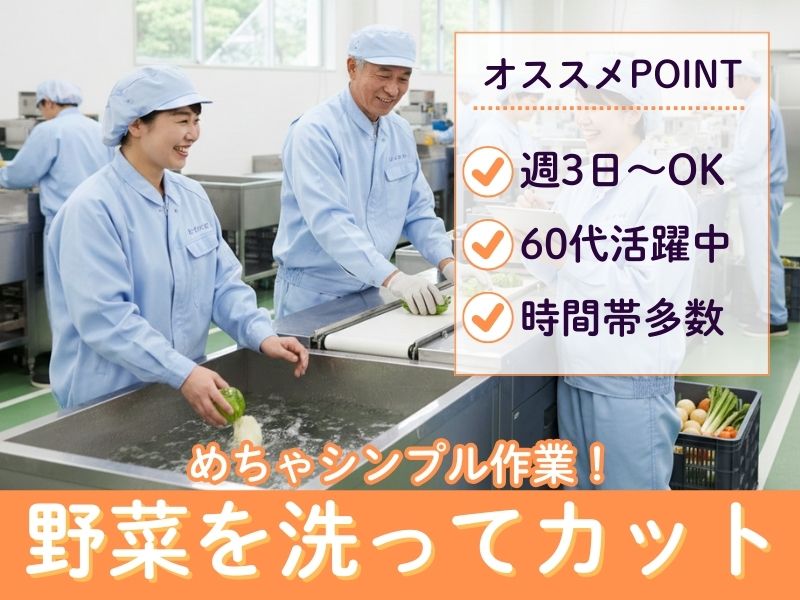 \早朝・9時~など選べる/週3日~勤務OK☆野菜をあらって小さくカット(´ω`*)車通勤OK