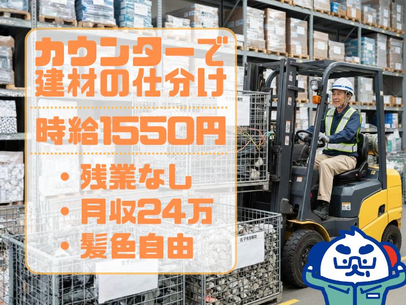 <残業なしで月24万円以上!>8割リフト作業★建設資材を扱うカウンターリフト◎土日祝休み!
