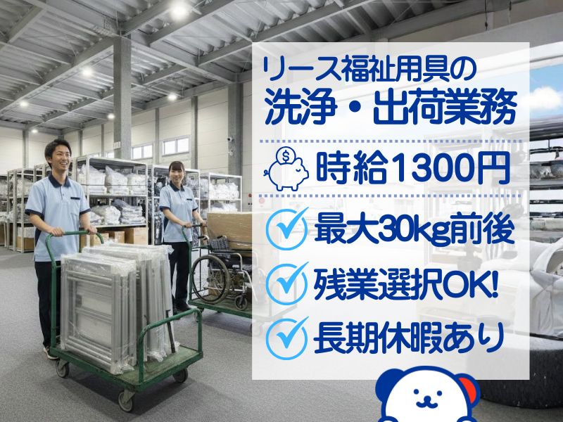 <9:00~18:00他・土日祝休>午前と午後から選べる!福祉用具の洗浄・出荷作業*未経験歓迎♪