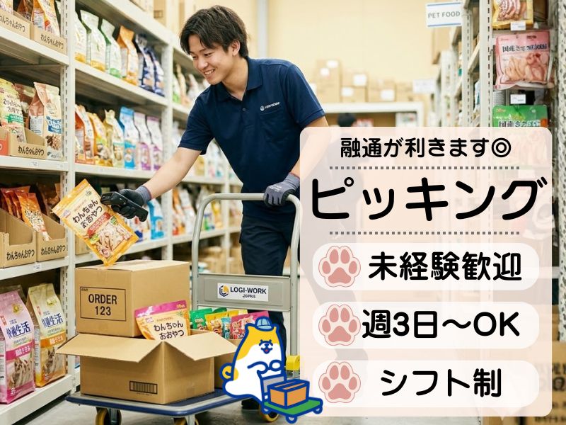 <シフトの融通が利きます◎>週3日~OK!ペット用おやつのピッキングや箱詰め*未経験歓迎~♪