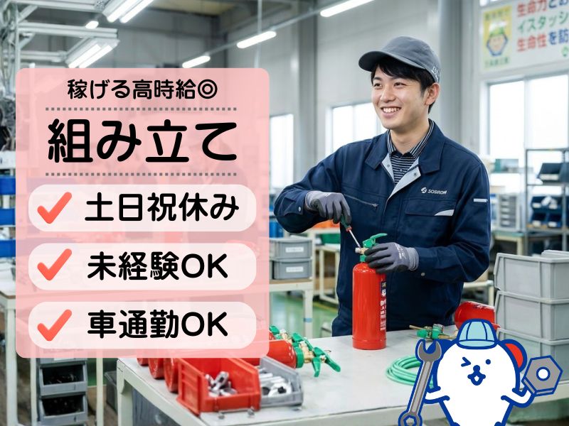 <夕方17時半まで・土日祝休み>未経験OK!消火器などの組み立て作業*稼げる高時給♪