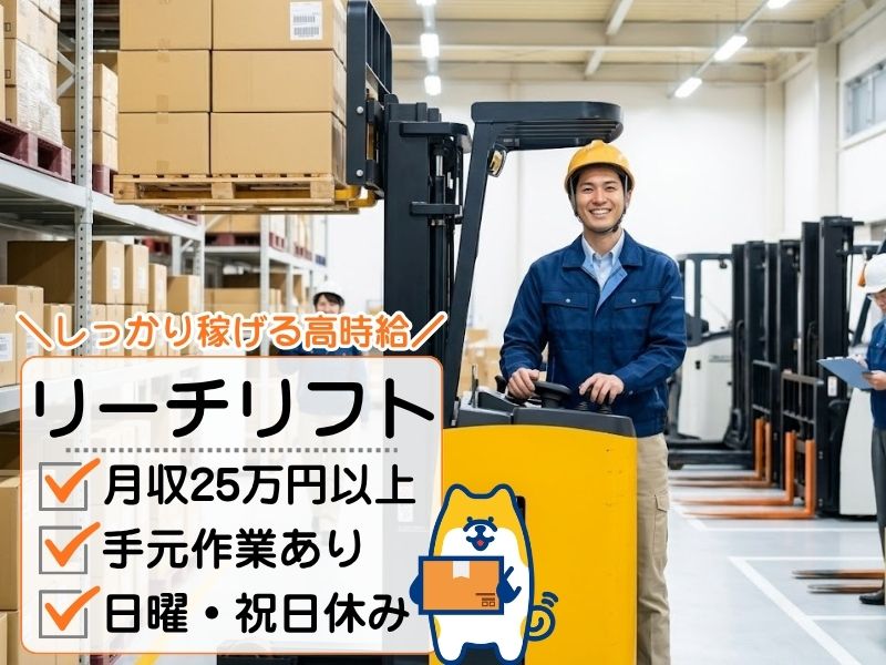 <東灘区・高時給1500円>フルタイムで安定収入!リーチリフト作業*ピッキング・検品あり♪