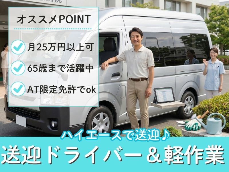 【普通免許があればOK】月25万円以上も可能♪病院の送迎ドライバー&軽作業のコツコツワーク◎