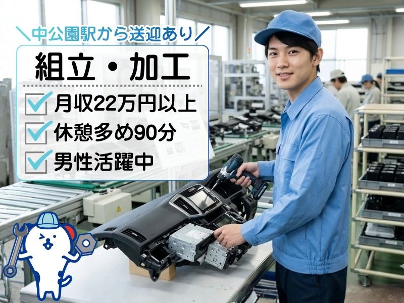 <中公園駅から送迎あり♪>時給1450円!カーナビ部品などを車に取り付け・組立・塗装加工◎
