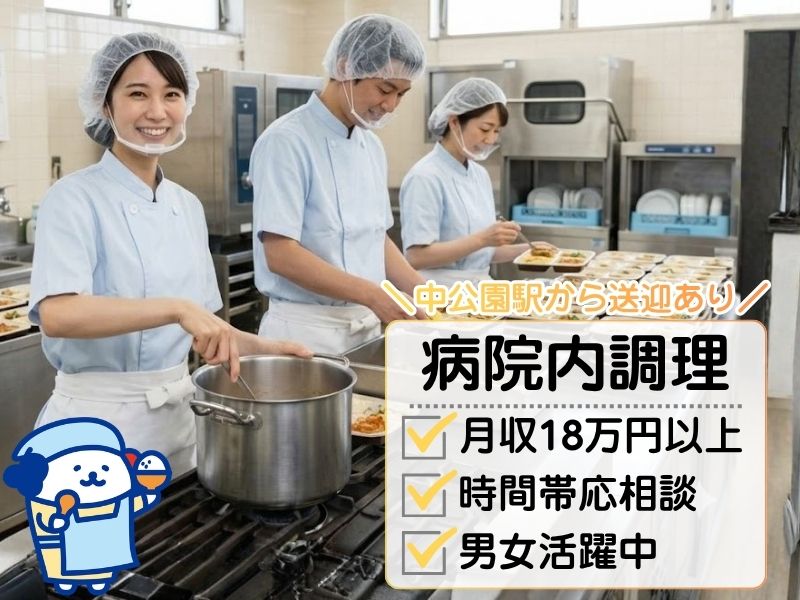 <シフトや時間の相談OK!>17時定時で残業ほぼなし◎病院の調理スタッフ*時給1250円~♪
