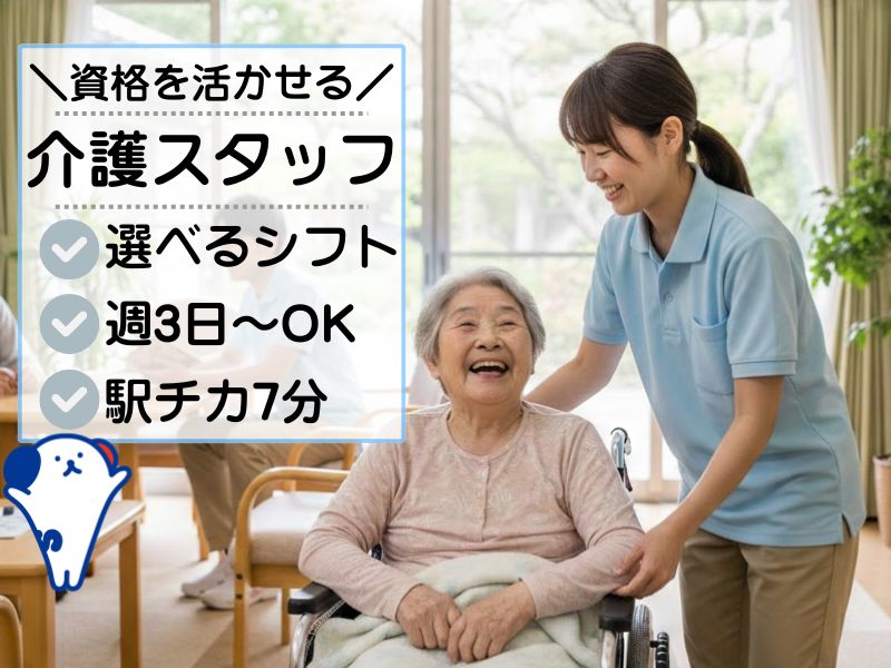 <資格を活かして働ける♪>週3日からOK!老人ホームの介護スタッフ*空調完備*長田駅チカ徒歩7分♪