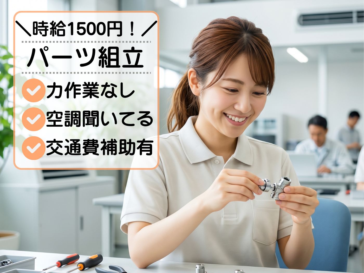 \*交通費5万円まで支給あり*/時給1500円!パズル感覚で部品をコツコツ組立☆空調あり♪