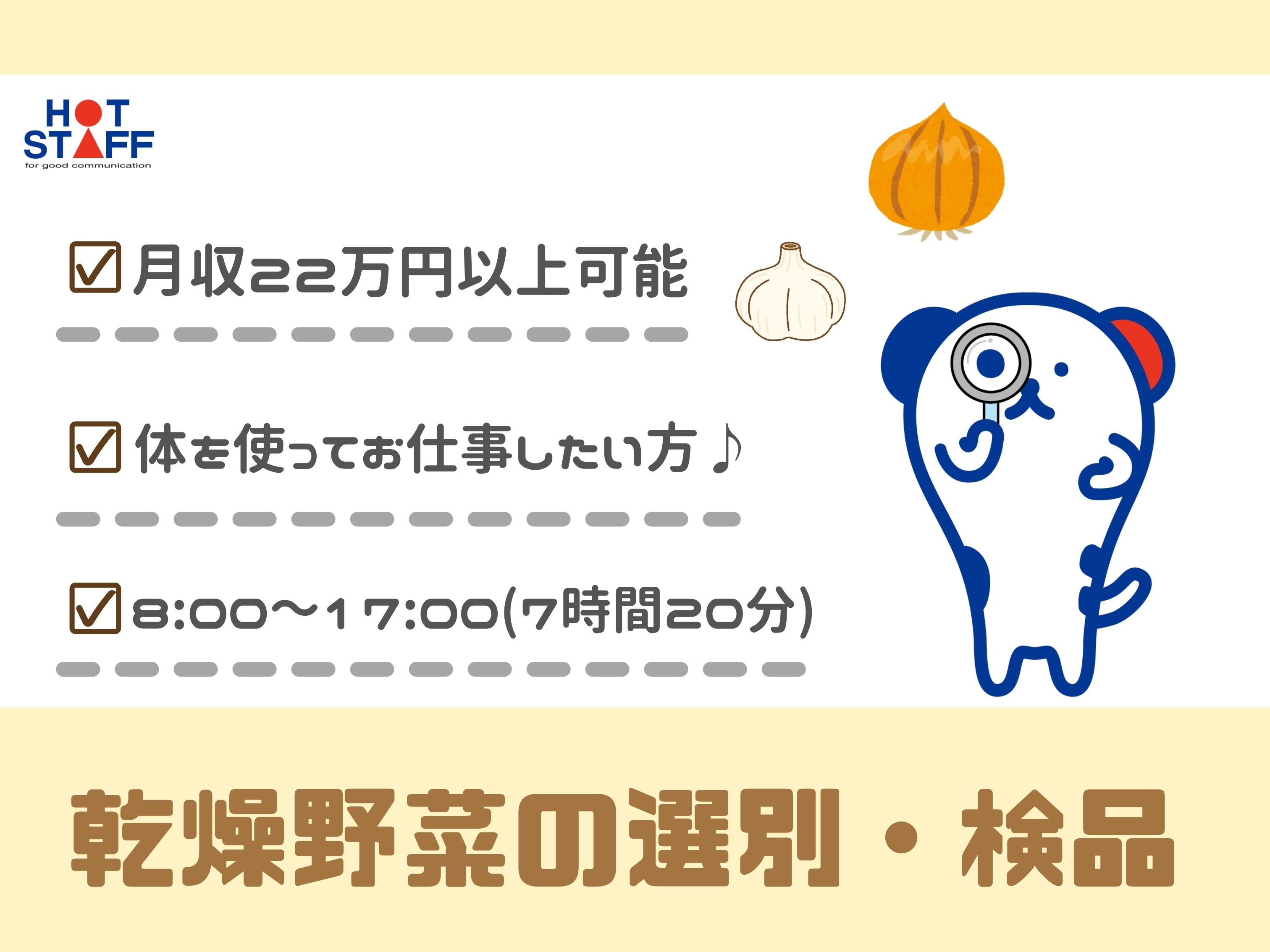 もくもく作業をお探しの方♪/土日祝休み・日勤・長期休暇あり/乾燥野菜の選別や目視検査