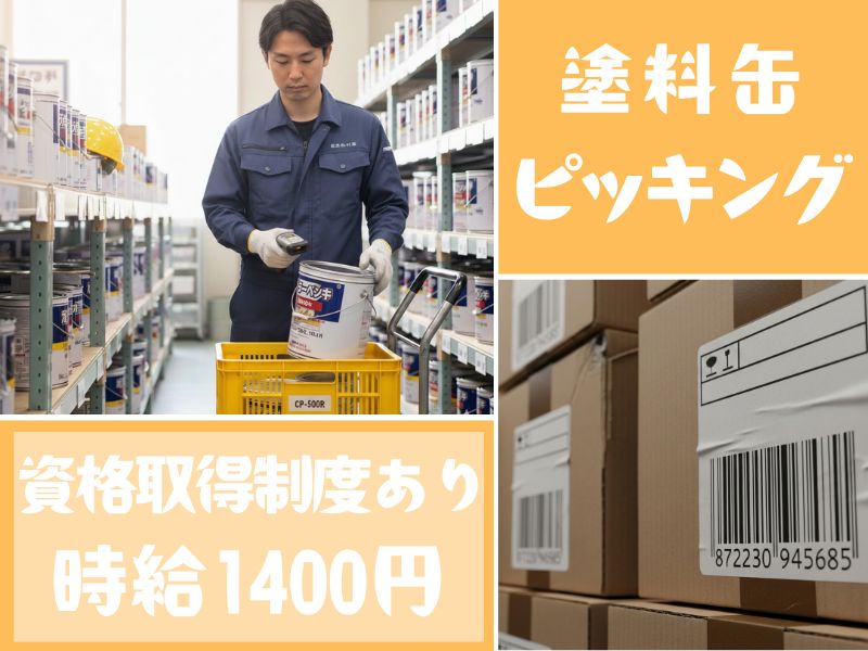 【ピッキングで時給1400円(`・ω・´)!】塗料を扱う倉庫でお仕事◎リフトの資格取得制度あり♪