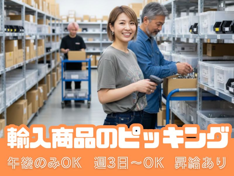 \輸入小物のピッキング(´∀`*)/週3~午後のみ勤務もOK♪ジーパンなどラフな服装で勤務OK☆昇給あり