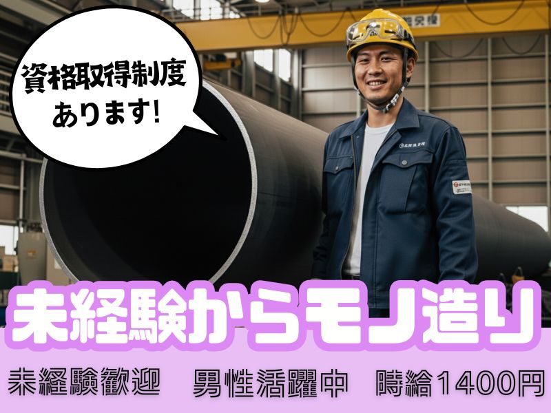 【残業なしでも月22万円!(´ε`* )】パイプの製造補助☆リフト・クレーン資格を会社負担で取得OK!