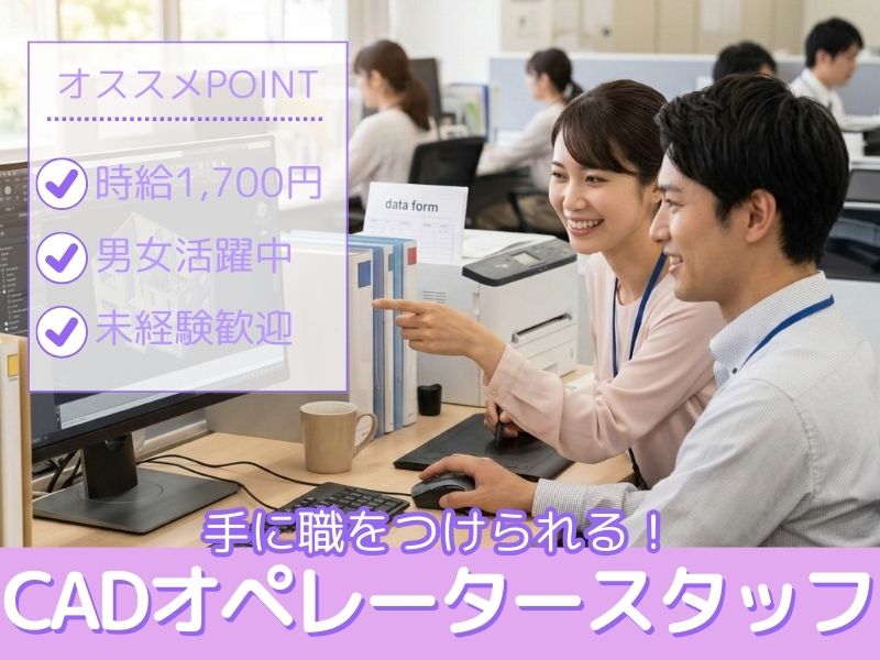 時給…1700円Σ(゚Д゚) 未経験からCADを学べる?!無料送迎あり、車通勤OK、激安食堂完備( ;∀;)!
