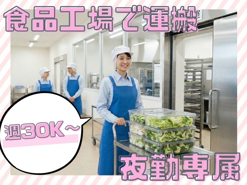 【24時~の夜勤*週3日~OK!】土日勤務できる方大歓迎~♪*工場内でお惣菜などの運搬作業☆(・∀・)p