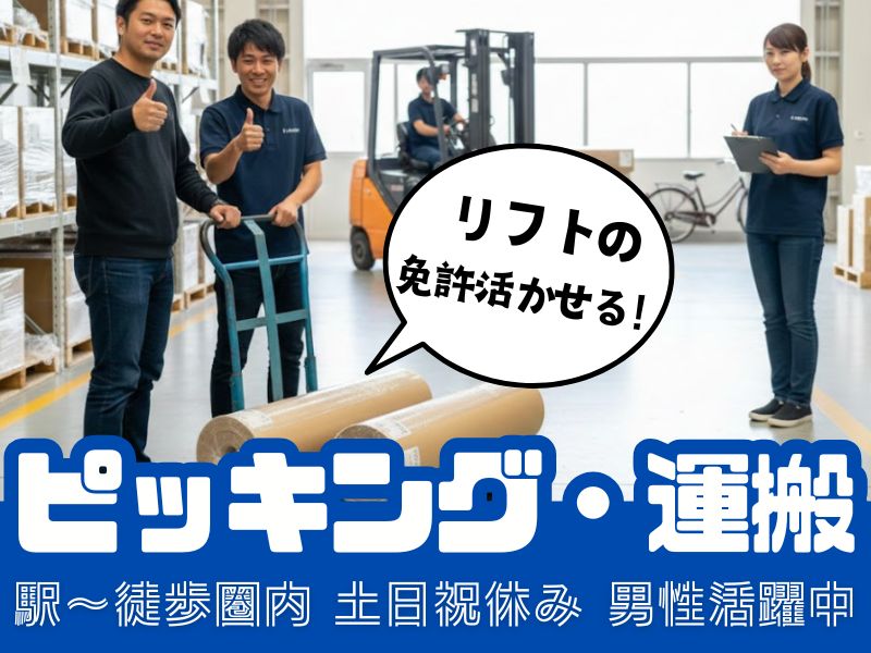 【上場企業でリフト運搬♪】時給1400円スタート(`・ω・´)!食堂完備で土日祝+長期休みあり◎