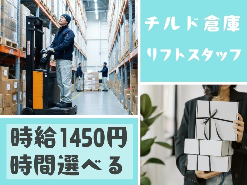 \時給1450円!/リフトの経験いかせる♪チルド倉庫内で食品の仕分けや積み込み◎車で通勤OK