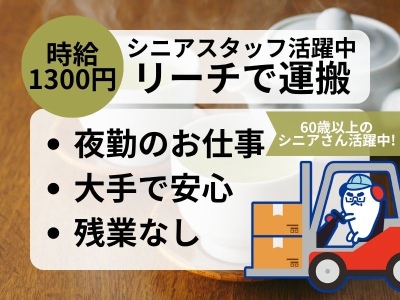 <残り1枠・夜勤リフト案件>残業なしで20万以上*リーチで茶葉入り袋の運搬*大手企業で安心◎