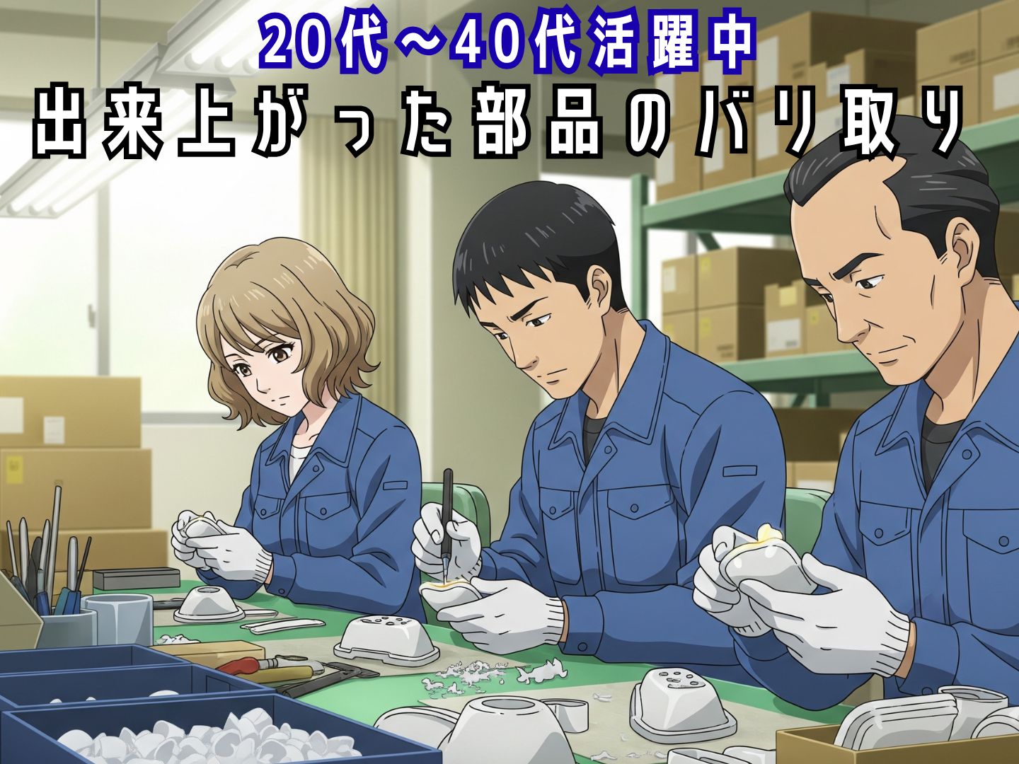 【安堵町】15:00まで時短!/プラスチック部品のバリ取り→箱に詰めるだけ!/10:00スタートも相談できます♪