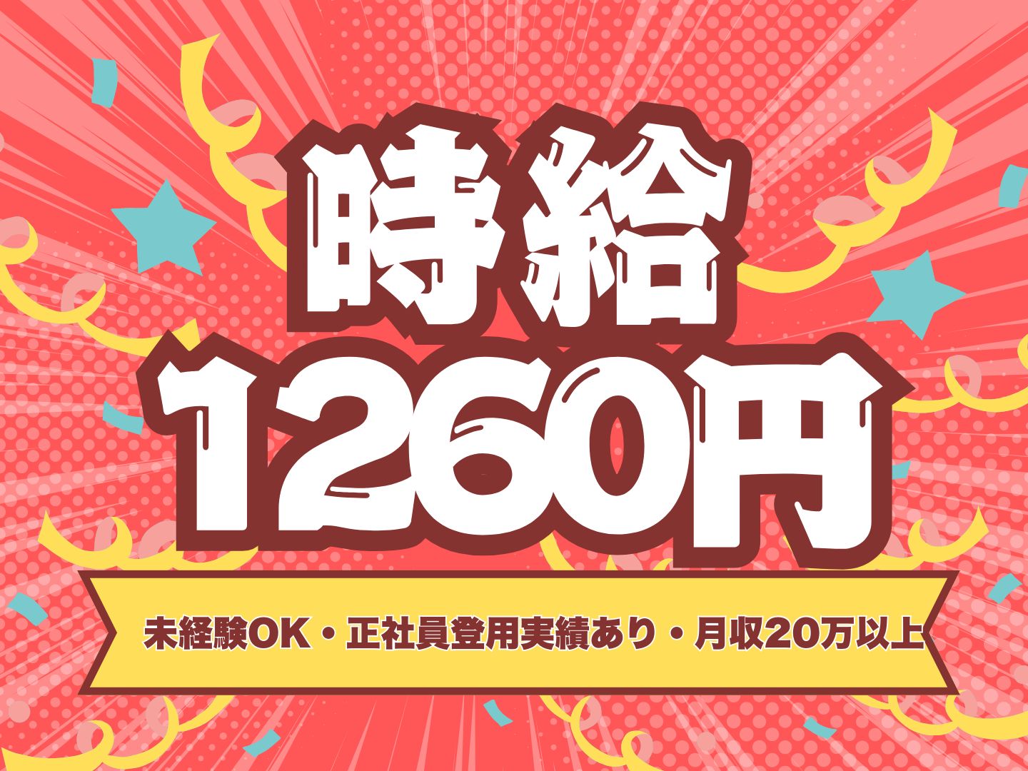 月収例 時給1250円×8H×20日=20万円~(+交通費支給/規定あり)