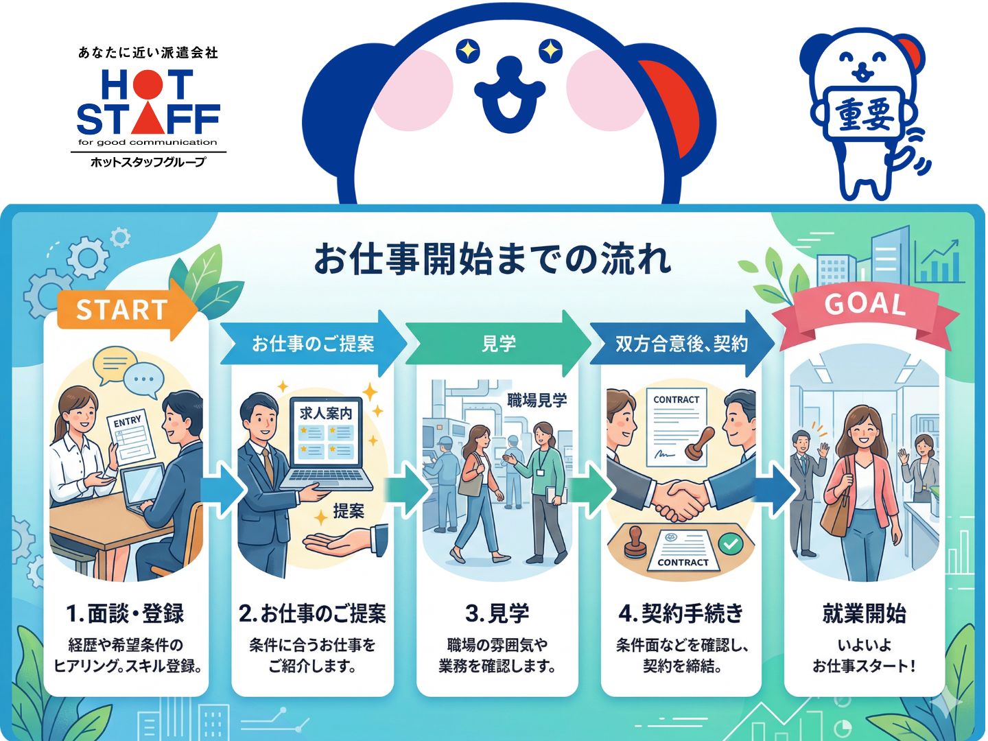 お仕事開始後も担当者がばっちりフォローします♪