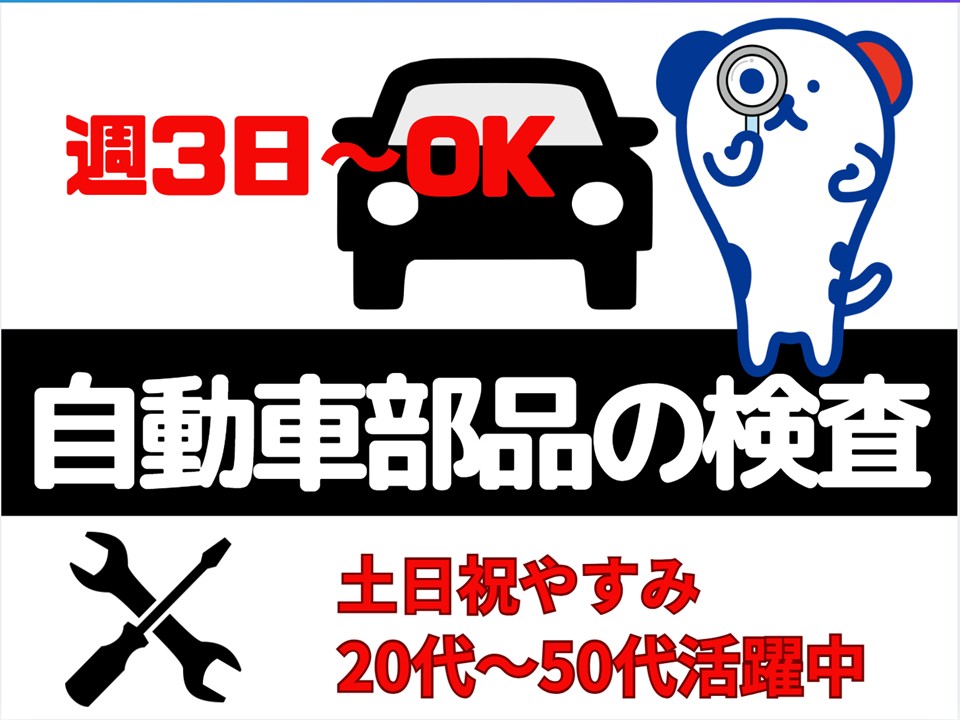 週3日でOK◎♪クリーン服の着用なし/座り作業♪/自動車部品のかんたん目視チェック/髪色自由!