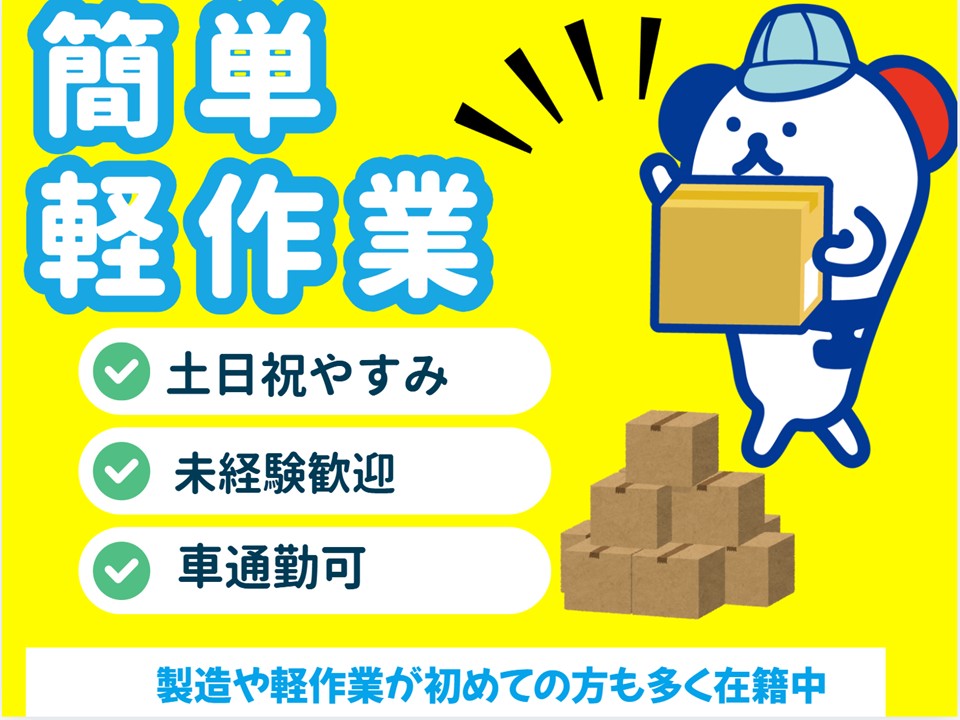 モクモク作業が好きな方、必見!大手企業で箱詰めスタッフ募集!大型連休・土日祝おやすみ!