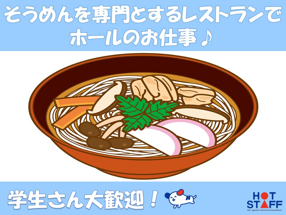 笑顔で「何名様ですか?」から始める接客業務 5月から8月末まで!三輪そうめん屋のホールレジスタッフ♪