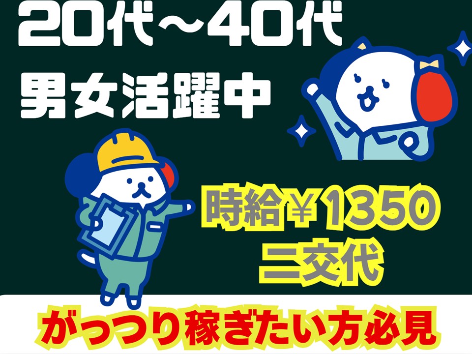 ※残業代もばっちりお支払い♪ 8時間以上の勤務の場合、時給は1375円になります。 ★通勤手当★距離に応じて交通費を規定支給 (徒歩・自転車通勤は除きます)
