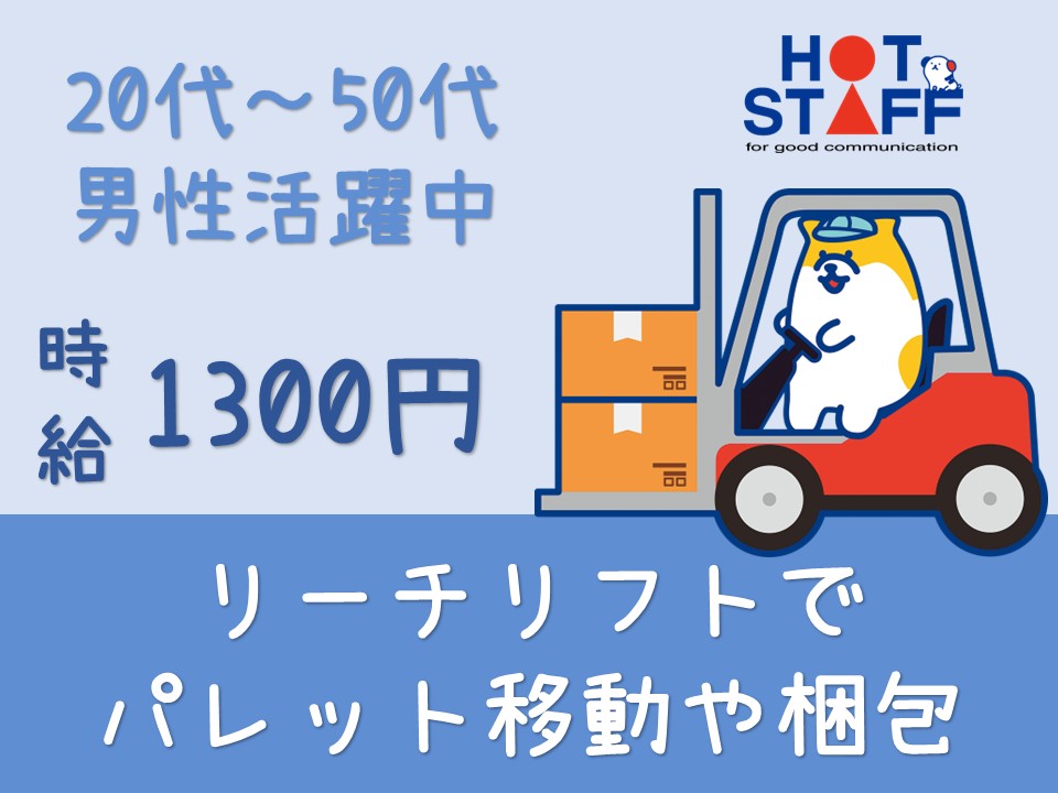 月収20万以上の高収入◎/リーチリフトでパレット運んだり・ラップでクルクルと梱包☆■中区・時給1300円■