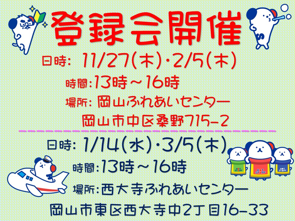 \\ホットスタッフ岡山より登録会のお知らせ//