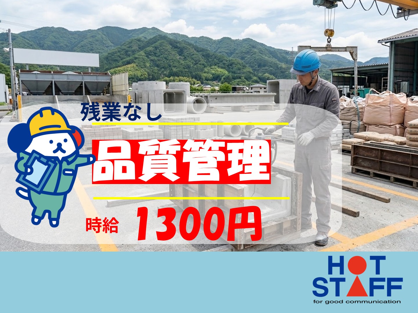 コンクリート製品の製造と品質管理の補助をお願いします。