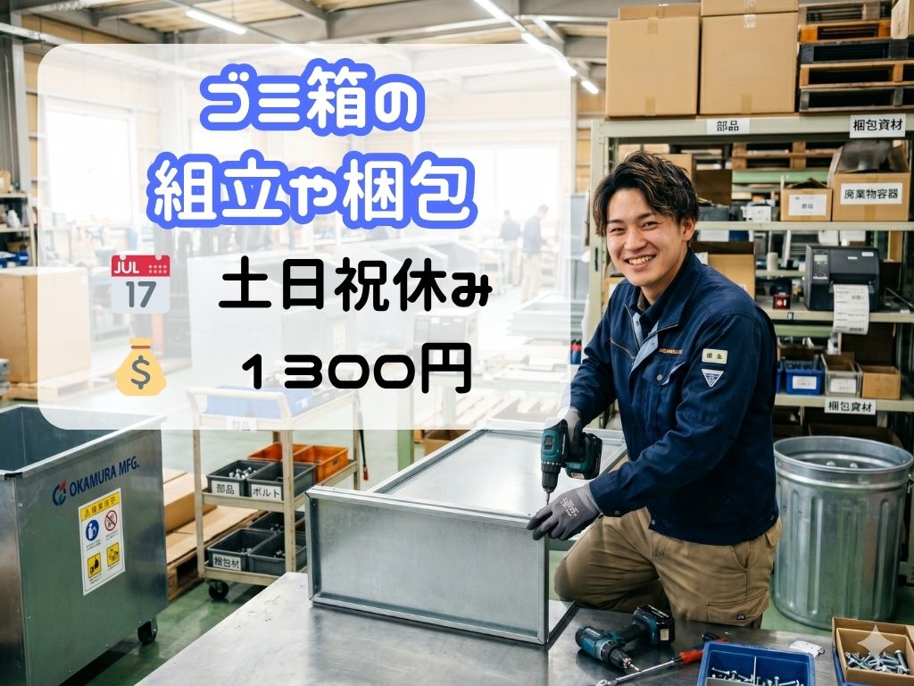 \土日祝休み・残業なし/マンション向けゴミ収集庫の製造や梱包作業■東区・時給1300円■